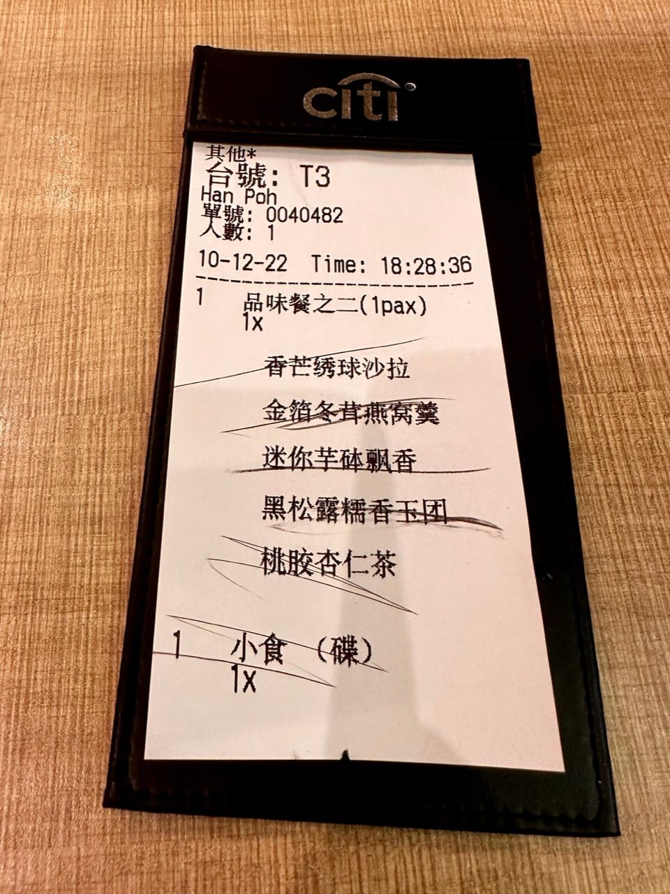 The incredibly kind host told me that the LingZhi was fully booked. But then, she eyed me closely and noted that I was just one person. Would I be willing to have a single table and chair set up in the lobby of the restaurant under its lighted sign and eat there? Without blinking, I said that sounded lovely.