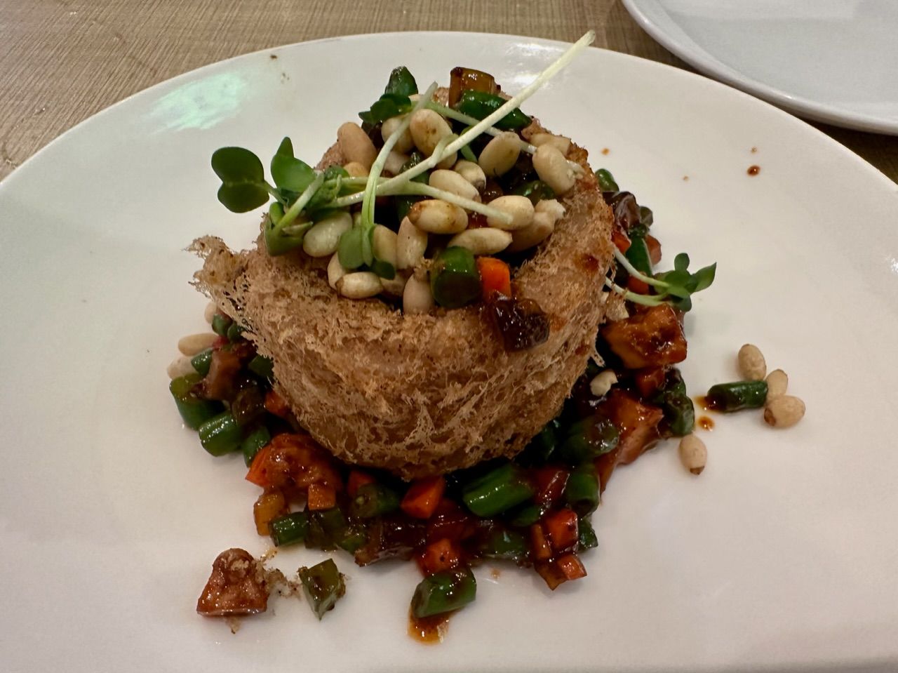 LingZhi has won the Restaurant Association Singapore's Epicurean Star Award for Best Vegetarian Restaurant multiple times, including in 2021 and 2022. I wasn't sure I could get in without a reservation, especially on a Saturday night during the holidays. They opened at 6 p.m. and so I got there shortly after that to try. The place was already packed, with every table and chair I could see taken.
