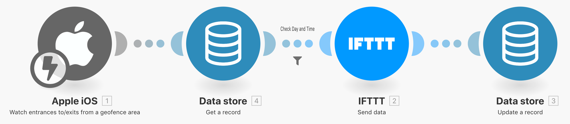 My goal was coming up with a way for my smartphone to detect that I've left the apartment and then kick off the Roomba. For the detection part, I started off looking at IFTTT.